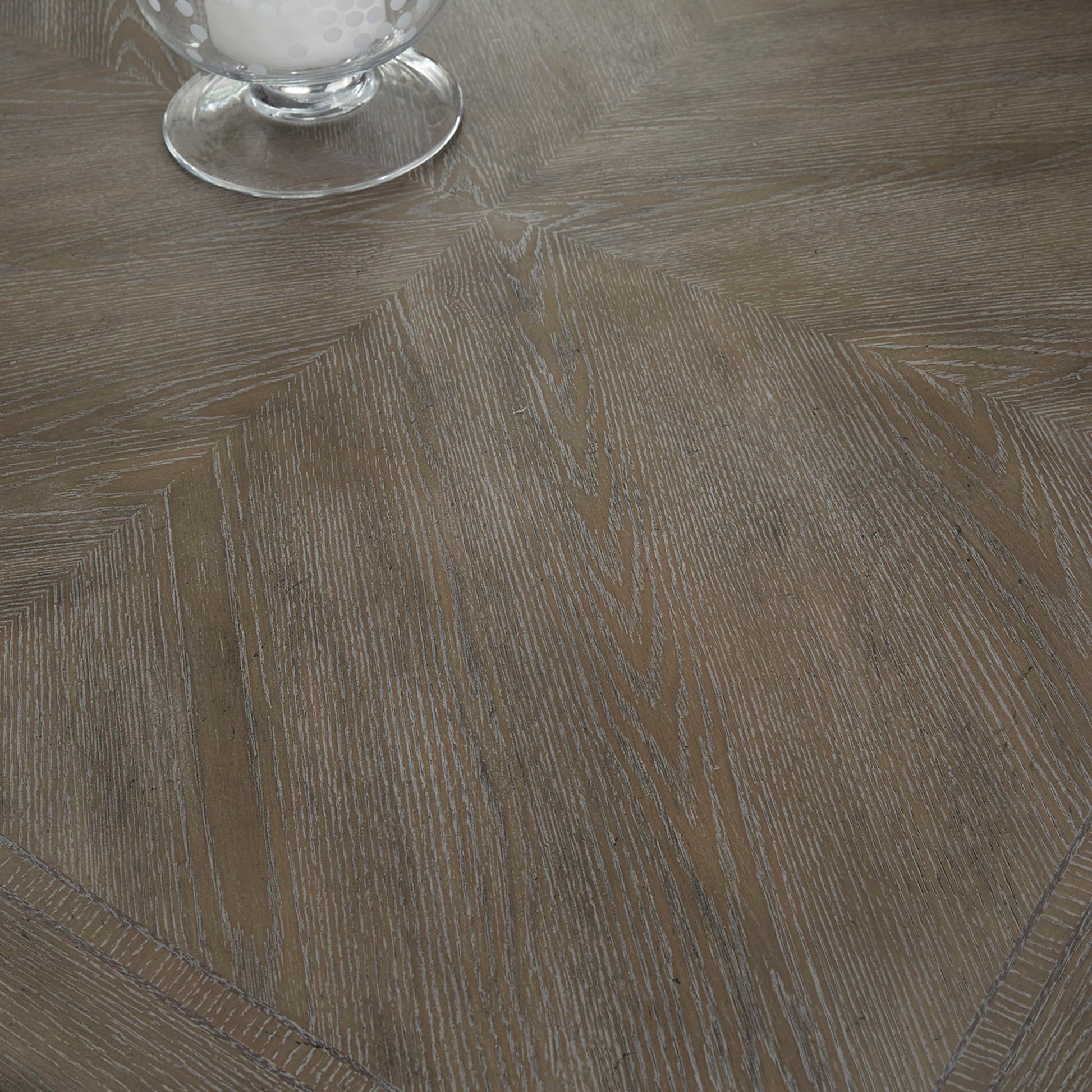It’s never been easier to be elegant with the Abbey Park trestle table set. Crafted of poplar and rubberwood solids with cathedral white oak and birch veneers, this set features an antique white finish with heavy chipping and destressing and a weathered brown with whitewash top. This set consists of the trestle table and four upholstered side chairs. The table features a fancy face veneer design on the top with shaped corners and fluted accents, anchored by a raised panel pedestal base with a center trestle. The chairs feature chenille upholstery with a nail head trim, tapered legs with fluted accents, and nylon chair glides to protect your flooring. Blending of European traditional design influences makes Abbey Park a truly unique style for any living space.