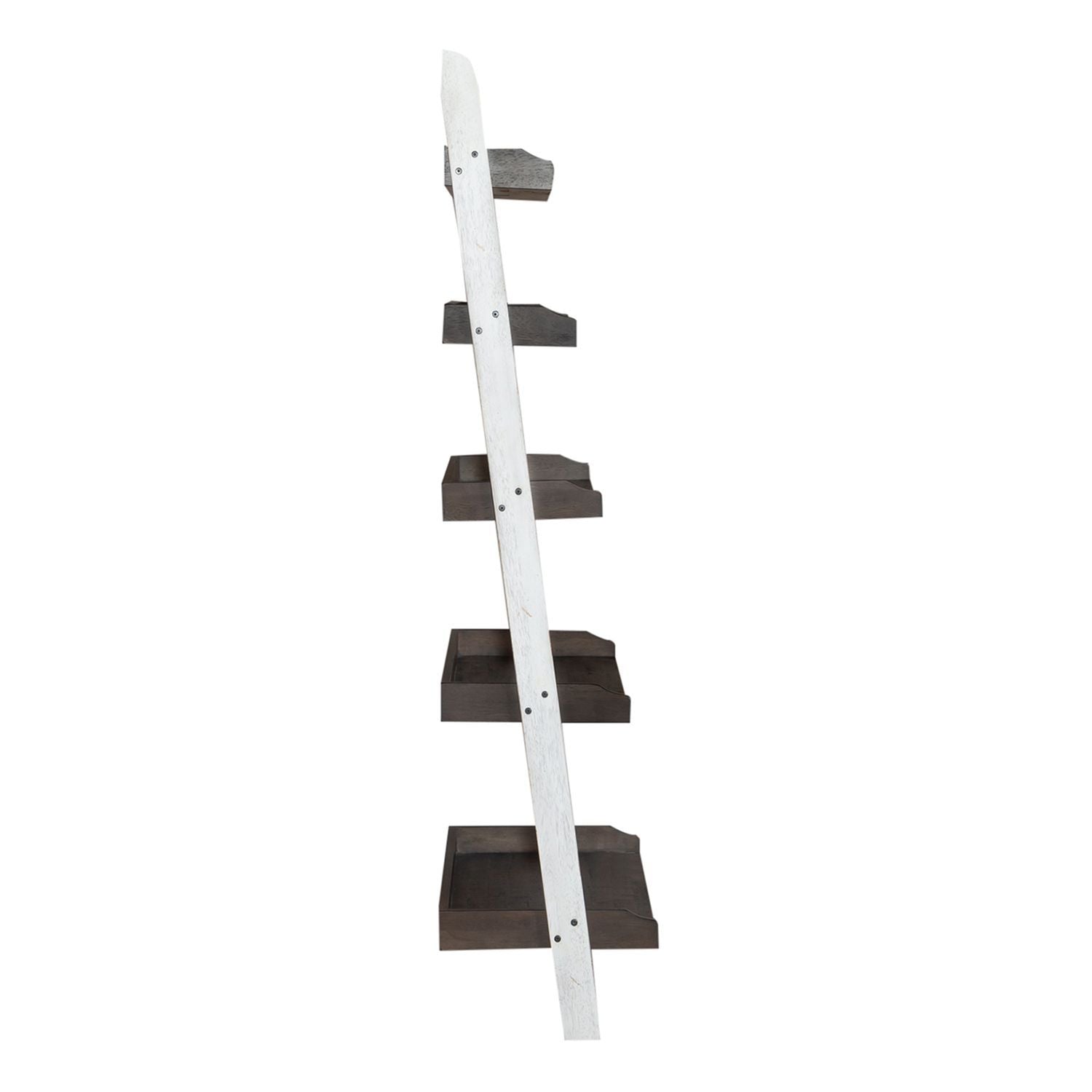 Weathered, rustic surfaces emphasize the simple beauty of everyday things. Farmhouse features a weathered white finish that looks better over time. A picnic style table generously styled to accommodate family and friends has two end leaves (18") that expand the table to 98". The classic Windsor chair known for its comfort, style, and value has simple turned legs and back spindles. Use the server in the dining room, foyer, or as a media console in the living room. This multi functional piece is 55" wide with 2 storage drawers and 2 open bottom shelves, one that accommodates wine storage. The open style server is accented with back diagonal slats to continue the farmhouse design. Add two of the leaning shelves on either side of the server to make a storage wall. The leaning shelves features 5 graduated shelves.