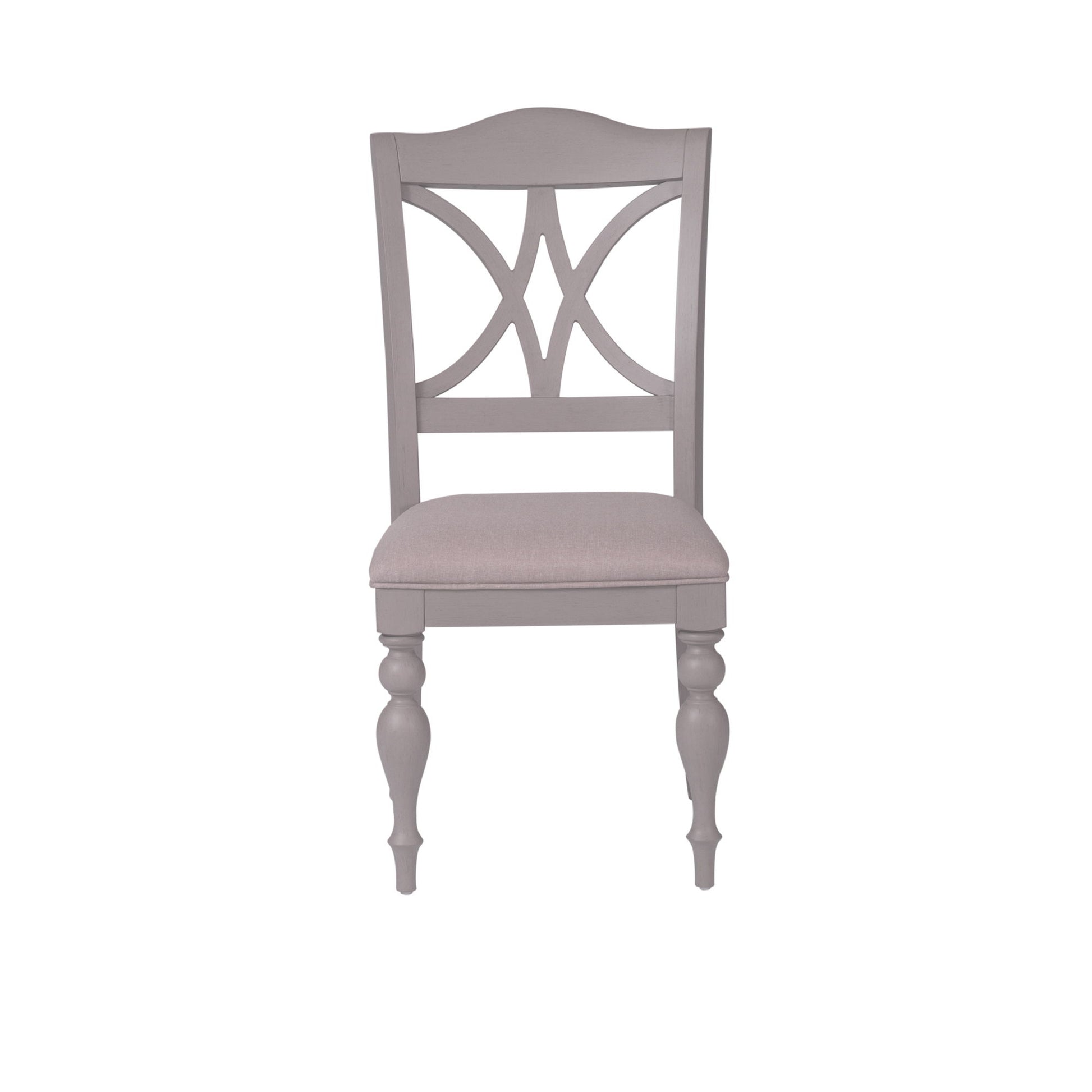 Sit in comfort and style with the Summer House slat back side chair. Crafted of poplar and rubberwood solids, this piece features grey linen upholstery, nylon chair glides to protect your flooring, decorative backs, and is anchored by beautifully round turned legs. This piece is available in an alternate finish, sure to be great addition in any space.